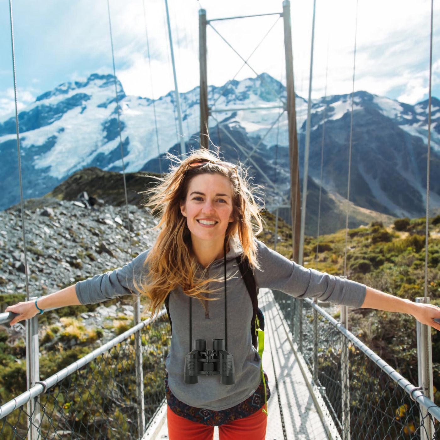 Focus by adjusting the right eye cup and center wheel. Widely used for adults or children bird watching, outdoor sightseeing, climbing traveling, sport events, concerts star gazing, etc. (Tips: Built with a standard tripod interface, the tripod is not included).